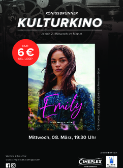 Das Königsbrunner KULTURKINO findet am 2. Mittwoch im Monat im Cineplex (Bürgermeister-Wohlfarth-Straße 81) zum vergünstigten Preis von nur 6,00 € inkl. Loge (Onlinepreis, Kinokasse 6,50 €, ggf. zzgl. Aufpreis für Premiumsitze) statt, jedoch können alle Filminteressierten, die den Termin verpasst haben, den Film ab sofort auch noch im Nachgang an weiteren Terminen sehen, dann jedoch zum regulären Eintrittspreis.