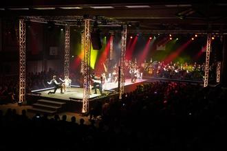 Eine Zeitreise durch ca. 400 Jahre Musik, Mode und Kultur hat das Dreikönigskonzert in der Willi-Oppenländer-Halle am 6. Januar geboten. Rund 1000 Zuschauerinnen und Zuschauer genossen einen „Tanz durch die Jahrhunderte“, der sich auf der großen T-förmigen Bühne mit einer phänomenalen Lightshow entfaltete. Den musikalischen Part gestaltete das Kammerorchester Königsbrunn unter der Leitung von Dr. Christoph Teichner mit Stücken aus Epochen von Barock bis Moderne. Er hatte auch die künstlerische Gesamtleitung des Abends, fast alle Stücke selbst arrangiert und dirigierte das Orchester.