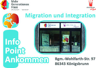 Der „Info-Point Ankommen“ lädt alle, die auch beruflich in Königsbrunn und Umgebung ankommen möchten, zu einer Infoveranstaltung ins Mehrgenerationenhaus ein. Petra Renger vom Bildungsbüro des Landratsamtes Augsburg wird über Bildungsangebote für Erwachsene und Ausbildungssuchende informieren.