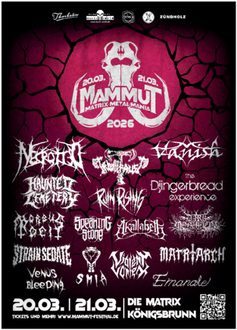 Bereits zum neunten Mal findet am 20. und 21. März 2026 das Mammut-Festival im Jugendzentrum MatriX statt. An zwei Tagen werden wieder 16 Bands aus den verschiedensten Metal-Richtungen die Bühne erobern und die Fans begeistern. So ist für jeden etwas geboten: Metalcore und Deathcore für die jüngere Zielgruppe, aber auch Heavy Metal oder Death Metal für die gestandenen Metalheads.