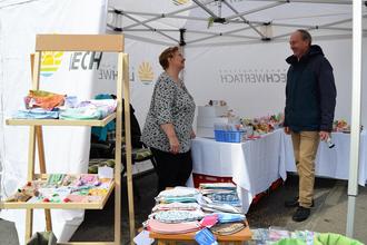 gemischt. Erhöht wurde der Anteil der Essens- und Getränkestände, was bei den Königsbrunnern sehr gut ankam. Viele Besucherinnen und Besucher machten ihren Sonntagsspaziergang zum Marktbesuch, freuten sich, Bekannte zu treffen. 1. Bürgermeister Franz Feigl nutzte den Nachmittag ebenfalls für einen Marktbummel und sprach mit Besuchern und Verkäufern.