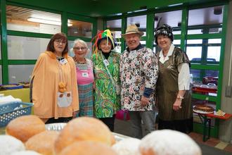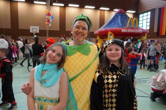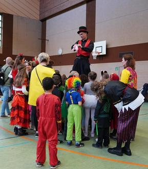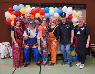 Rund 35 Helferinnen und Helfer rund um Brigitte Holz, 1. Vorsitzende des Hilfsfonds, und Petra Zeininger-Benning, ebenfalls Hilfsfonds, hatten die Halle bereits am Vormittag dekoriert. Nachmittags versorgte das Team die kleinen und großen Maschkerer mit Essen und Getränken und sorgte für Unterhaltung. Von Bonbonregen über Polonaise bis hin zu Garde-Auftritten reichte das Programm. Es gab eine Spielecke mit lustigen Angeboten wie Eierlauf, Sackhüpfen und Zielwerfen, dazu Bull-Riding und eine Hüpfburg. Stets von vielen Begeisterten umringt war der „Weltmeister im Luftballonmodellieren“, der auf Stelzen stehend seine Kunst in großer Höhe ausübte.
