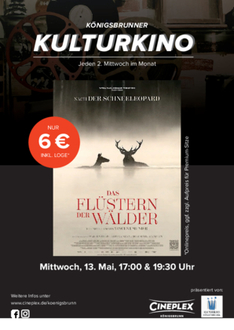 Das Königsbrunner KULTURKINO findet immer am 2. Mittwoch im Monat im Cineplex, Bürgermeister-Wohlfarth-Straße 81, zum vergünstigten Preis von nur 6 Euro inkl. Loge statt (Onlinepreis, Kinokasse 7 Euro, ggf. zzgl. Aufpreis für Premiumsitze).