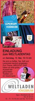 Zum Weltladentag am 13. Mai 2023 fordern hunderte Weltläden bundesweit, dass globale Lieferketten durch ein starkes EU-Lieferkettengesetz gerechter werden müssen. Unter dem Motto „Mächtig FAIR“ zeigen sie auf, welche positiven Auswirkungen ein EU-Lieferkettengesetz auf den Schutz von Menschen und Umwelt entlang der Lieferketten hätte, wenn es wirksam ausgestaltet wird. Der Weltladentag ist ein wichtiger Aktionstag der Weltläden und findet zeitgleich mit dem Internationalen Tag des Fairen Handels (World Fair Trade Day) statt. Auch der Weltladen Königsbrunn beteiligt sich mit einer Aktion an dieser bundesweiten Kampagne des Weltladen-Dachverbandes.