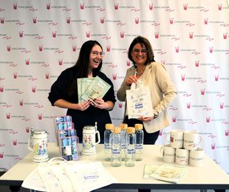 Die Königsbrunn-Souvenirs aus dem städtischen Kulturbüro machen richtig Spaß! Das bewiesen Nadja Rathgeber (li.) und Tanja Zimmermann bei der Vorstellung verschiedener Merchandising-Artikel mit dem Königsbrunner Stadt-Logo.