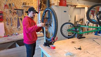 Der 20-jährige FSJler Romeo Fischer vom Königsbrunner MatriX-Team bietet Kindern und jungen Erwachsenen die Möglichkeit, in der gut ausgestatteten MatriX-SelbstHilfe-Werkstatt selbst Reparaturen und Wartungsarbeiten am Fahrrad durchzuführen. Der talentierte Schrauber und angehende Zweiradmechatroniker gibt kostenlos Hilfe zur selbstständigen Kontrolle und unterstützt mit Knowhow, Tipps und Equipment – egal ob der Reifen geflickt, die Kette geölt, Lager oder Steuersatz getauscht oder die Felgen zentriert werden müssen.
