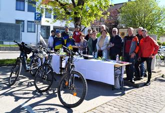 Am Samstag, 27. April 2024, erreichte die Radlerstaffel auch Königsbrunn und wurde am Marktplatz von einer kleinen Delegation um Rebecca Ribarek, Leiterin des Kulturbüros, begrüßt. Organisator und EWIV-Geschäftsführer Christoph Tschaikner und Präsident Dr. Walter Stefan freuten sich über den freundlichen Empfang bei dem länderübergreifenden Projekt.