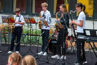 Wie jedes Jahr im Sommer verwandelt das städtische Kulturbüro die Gartenanlage rund um das Mercateum in einen Treffpunkt für Musikliebhaber. Im Juli können sich Besucherinnen und Besucher bei freiem Eintritt auf drei kurzweilige Sommerkonzerte freuen – gestaltet von den Holzbläserensembles der Königsbrunner Musikschule, der BigBand des Gymnasium Königsbrunn und des Blasorchesters.