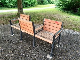 … und von vorne beschmiert – die beiden neuen Bürgerbänke!