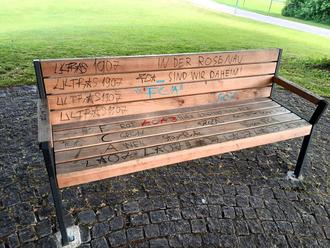 Wann genau die Bänke beschmiert wurden, ist nicht bekannt, vermutlich im April/Mai. Der Schaden wurde bei der Polizei angezeigt.