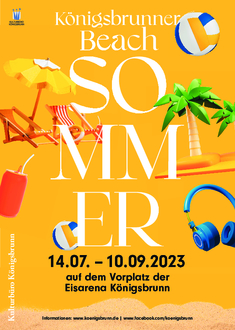 Die FSK-GmbH, das Team der Jugendfreizeitstätte MatriX und das Kulturbüro Königsbrunn präsentieren den Königsbrunner Beachsommer 2023!