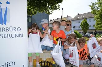Am 20. Juni fiel der offizielle Startschuss für das Ferienprogramm 2023, das am 27. Juli mit den ersten der rund 190 Kurse startete. 1. Bürgermeister Franz Feigl stellte unmittelbar vor der Freischaltung von Programm und Anmeldeportal im Internet die aktuelle Broschüre vor. Die ersten Exemplare präsentierte er vor dem Königsbrunner Rathaus 17 Buben und Mädchen aus der Klasse 1e der Grundschule Süd. Die Schulkinder, die mit ihrer Lehrerin Charlotte Alt gekommen waren, erhielten jedes eine Überraschungstasche im Design der Stadt, die neben dem druckfrischen Programmheft unter anderem eine bemalbare Brotzeitdose, Stifte, Straßenmalkreiden und (natürlich) auch einige Süßigkeiten enthielt.