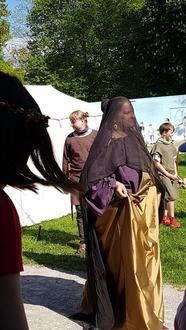 Renate Koppenberger im Kostüm einer Striga. Das Foto wurde im Archäologischen Park Cambodunum in Kempten aufgenommen.