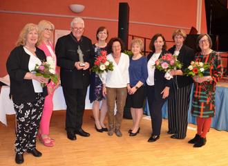 Die Preisträgerinnen und Preisträger aus dem Jahr 2022 bei der Preisverleihung am 21. April 2023 im Gemeindezentrum St. Johannes.