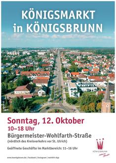 Herzlich willkommen beim nächsten Königsbrunner Marktsonntag! Am Sonntag, 12. Oktober 2025, heißt es im nördlichen Bereich der Bürgermeister-Wohlfarth-Straße an den zahlreichen Ständen wieder: Kommen Sie zum Schauen, Bummeln und Genießen vorbei – es wartet allerhand Nützliches, Dekoratives, Leckeres und Informatives auf Sie!