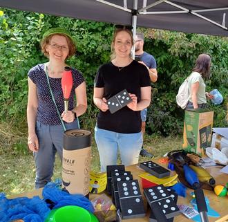 Und neben Spiel und Spaß gab es auch noch eine gute Tat: Im Vorfeld hatten zahlreiche Königsbrunner Kindertagesstätten, die Grundschulen und die Via-Claudia-Realschule für einen guten Zweck Kronkorken gesammelt: Unglaubliche 1.030 kg konnten an eine Vertreterin des „Bunten Kreis“ überreicht werden.