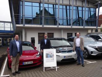 Erster Bürgermeister Andreas Buckreus, Dr. Rainer Seßner, Geschäftsführer von Bayern Innovativ und Dr. Gerhard Brunner, Werkleiter der Stadtwerke Roth kommen mit ihren E-Fahrzeugen in den Genuss der Treibhausgas-Minderungsquote (THG-Quote) und dürfen eine stattliche Prämie von 300 Euro erwarten.