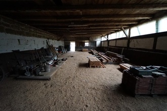 Der stützenfreie Innenraum der ehemaligen Reithalle ermöglicht eine Umnutzung zur multifunktionalen Mehrzweckscheune.