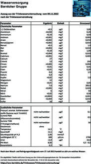 Der Zweckverband zur Wasserversorgung der Bernloher Gruppe veröffentlichte die Analyse zur Trinkwasseruntersuchung vom 09. November 2022.