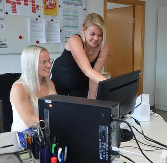 Die Ausbildungsleiterin Sarah Jahn arbeitet eng mit den Auszubildenden zusammen und erklärt ihnen ihre Aufgaben.