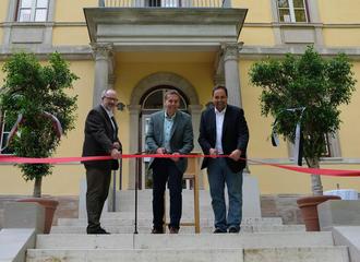 Durch die Gemeinschafts-Baumaßnahme konnten nicht nur die im unterschiedlichen Eigentum befindlichen Bereiche wieder zusammenführt und verbunden werden, die umfangreiche Hangmodellierung eröffnet darüber hinaus auch wieder die Sichtachse zwischen der toskanisch anmutenden Villenfassade der Oberen Villa und dem unteren Plateau am Sommerkeller.