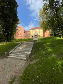 Im März dieses Jahres begann im jetzigen Eingangsbereich die Umsetzung des Projekts, das bei der Stadt Roth durch die Stadtplanung und im Landratsamt durch den Hochbau und der Kreisfachberatung für Gartenbau betreut wurde. Begleitet wurde sie außerdem vom planenden und bauleitenden Büro Wiegel aus Bamberg und der LGA Nürnberg, die die historische Bausubstanz untersuchte sowie den beiden ausführenden Bauunternehmen Fa. Jung aus Schwabach und Fa. GS Schenk aus Fürth.