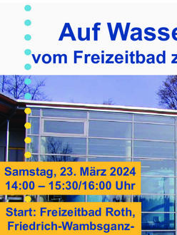 Besucht werden auf Wassers Spuren verschiedene Wasser-Stationen der Stadtwerke Roth. Einen Stopp wird es am Freizeitbad Roth, am Wasserwerk, an den Brunnen im Wasserschutzgebiet, am Hochbehälter Steinerne Eiche und am Pumpwerk Süd geben. Dabei erfahren die Gäste viele Geschichten aus der Historie, wie das Rother Trinkwasser gewonnen und verteilt wird und was alles hinter einem modernen Wassermanagement steckt.