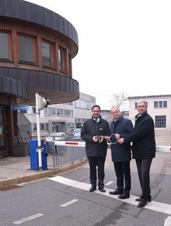 Bürgermeister Andreas Buckreus bekam stellvertretend für die Stadt Roth die Schlüssel zum LEONI-Gelände von CEO Markus Thoma und Werksleiter Wolfgang Reichel überreicht