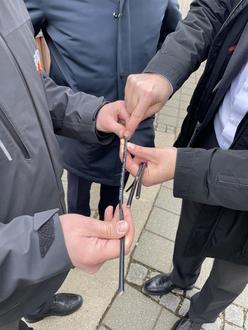 Als Abschiedsgeschenk bekam der Erste Bürgermeister auch ein Stück des letzten produzierten Kabels überreicht.