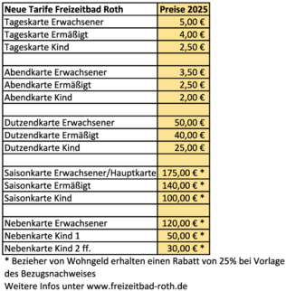 Aufgrund gestiegener Personal- und Unterhaltskosten werden die Preise für das Freizeitbad Roth für die Saison 2025 erstmalig seit neun Jahren neu gestaltet.