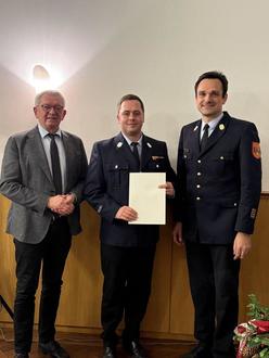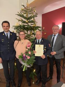 Zum Abschied überreichte die Kreisbrandinspektion ihm einen Gutschein für eine Woche Urlaub im Feuerwehrhotel Bayrisch Gmain, um ihm und seiner Frau eine wohlverdiente Auszeit zu ermöglichen.