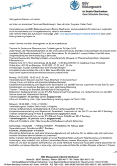 Anbei Termine vom BBV Bildungswerk im Bezirk Oberfranken.