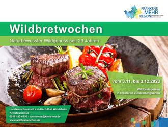 Der November startet mit einem kulinarisch-wilden Auftakt in Frankens Mehrregion. Vom 3.November bis 3. Dezember 2023 finden im Landkreis Neustadt a.d.Aisch-Bad Windsheim die Wildbretwochen statt. Im Aktionszeitraum servieren die teilnehmenden Gastwirte besonders