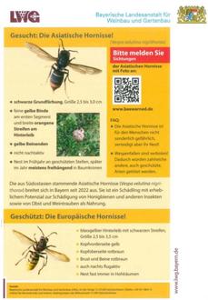 In den vergangenen Wochen wurden im unten abgebildeten Gebiet in Trautskirchen (Hohenrother Straße, Kirschgartenweg und An der Leiten) Hinweise auf die Asiatische Hornisse (Vespa velutina nigrithorax) gemeldet. Diese ursprünglich in Südostasien beheimatete Art gilt in Europa als invasive Art und kann eine Gefahr für heimische Insektenbestände - insbesondere für Honigbienen - darstellen. Für den Menschen ist sie nicht gefährlicher als heimische Hornissen, dennoch ist eine frühzeitige Erkennung wichtig, um eine weitere Ausbreitung zu verhindern.