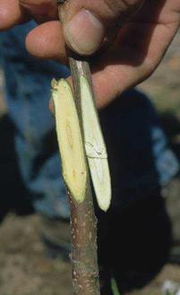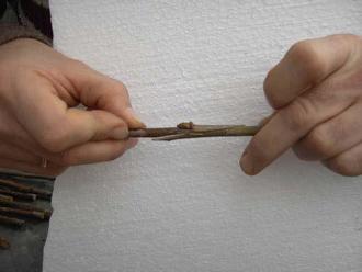 Dabei wird ein Reiser von der gewünschten Sorte mit einer Wurzelunterlage verbunden.