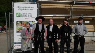 Am Montag, den 22. April feierte die Marktgemeinde Neuhof mit dem Team der Zimmerei Heinlein, den Planern, Bürgerinnen und Bürgern und den Mitarbeitern von Edeka Helmschrott das Richtfest.