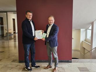 Anlässlich seines 45-jährigen Dienstjubiläums überreichte Bürgermeister Klaus Förster eine Urkunde an den Leiter des Hauptamtes, Thomas Ludwig, der seit mehr als drei Jahrzehnten die Stadtverwaltung Bobingen mit seinem Engagement und seinem Fachwissen bereichert. Seit März 1990 ist Thomas Ludwig im Dienst der Stadt Bobingen tätig und hat über die Jahre hinweg durch unermüdlichen Einsatz viele Aufgaben übernommen und das Hauptamt maßgeblich geprägt. Seine berufliche Laufbahn begann im September 1979, als er seine Ausbildung zum Beamten im mittleren Dienst bei der Stadt Königsbrunn startete. Nach erfolgreichem Abschluss arbeitete er dort als Sachbearbeiter im Hauptamt und in der Bauverwaltung. 1990 wechselte er zur Stadt Bobingen, wo er zunächst seine Laufbahn im mittleren Dienst fortsetzte, bevor er 2010 den Aufstieg in den gehobenen Dienst meisterte. Eine besondere Qualifikation erlangte er durch seine Ausbildung zum Standesbeamten und den Erwerb des Ausbilderscheins, mit dem er auch junge Kolleginnen und Kollegen in ihrer Laufbahn unterstützte. 2002 übernahm er die Leitung des Hauptamts in Bobingen. Als Hauptamtsleiter trägt Thomas Ludwig maßgeblich dazu bei, dass die städtische Verwaltung reibungslos funktioniert. Die Aufgaben des Hauptamtes sind vielfältig und von zentraler Bedeutung: Es koordiniert unter anderem die Personalverwaltung, ist für die Organisation innerhalb der Verwaltung verantwortlich und sorgt dafür, dass Arbeitsabläufe optimal gestaltet sind. Auch der ordnungsgemäße Ablauf des Sitzungsdienstes sowie die Unterstützung des Stadtrats gehören zu den Kernaufgaben des Hauptamts. Seit Juli 2023 teilt er seine Aufgaben mit seinem Nachfolger Fabian Koppel und gibt sein umfangreiches Wissen sowie seine wertvollen Erfahrungen an die nächste Generation weiter. Die Stadt Bobingen ist ihm für seinen unermüdlichen Einsatz zu großem Dank verpflichtet. Mit seiner ausgeglichenen Persönlichkeit schafft er eine angenehme Arbeitsatmosphäre und ist für viele Kolleginnen und Kollegen ein verlässlicher Ansprechpartner. Zu seinem Engagement für die Stadt sagt Thomas Ludwig selbst: „Die Arbeit für die Stadt Bobingen hat mir immer viel Freude bereitet. Es ist ein Privileg, für eine so engagierte und zukunftsorientiere Verwaltung arbeiten zu dürfen. Der Zusammenhalt und die gegenseitige Unterstützung im Team sind einfach etwas Besonderes.“