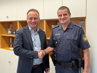 Bei einem Kennenlerngespräch im Rathaus hieß Bürgermeister Klaus Förster den neuen Dienststellenleiter der Polizeiinspektion Bobingen, Martin Binder, willkommen. Beide betonten die gute Zusammenarbeit zwischen Stadt und Polizei und freuten sich auf den weiteren Austausch.