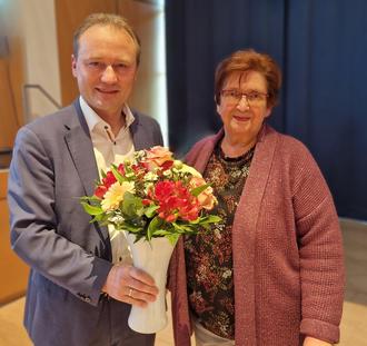 Erster Bürgermeister Klaus Förster bedankt sich im Namen der Stadt Bobingen bei Elisabeth König für ihr ehrenamtliches Engagement zum Wohl der Gemeinschaft