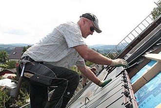 Fehlt noch der Austausch der alten Heizung. Je nach Vorgängermodell lässt sich mit einem modernen Heizsystem viel Energie und Geld sparen. Am besten wählt man gleich ein System, das auf erneuerbaren Energien basiert wie Holzpellets oder Wärmepumpe gerne kombiniert mit Solarwärmeanlage und auch zum Gebäude passt. Sinnvoll ist es, zuerst die Gebäudehülle zu dämmen und erst danach die Heizung zu erneuern. Geht man umgekehrt vor, ist die Heizung häufig überdimensioniert. Am Ende noch der Hinweis auf Maßnahmen, die wenig Geld kosten: so lässt sich mit dem hydraulischen Abgleich des Heizsystems durch einen Fachmann Heizenergie sparen. Auch eine optimale Einstellung der Regelung und das Dämmen der Heizungsrohre im Keller sind schnell erledigt und sparen Energie.