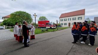 Nach altem Brauch segneten der katholische Stadtpfarrer Dominic Ehehalt und der evangelische Pfarrer Peter Lukas das neue Einsatzfahrzeug der Feuerwehr Bobingen