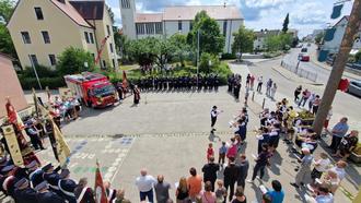 Im Herbst 2020 hat der Stadtrat den Auftrag zur Beschaffung des neuen Feuerwehrfahrzeugs erteilt. 2021 erfolgte die Ausschreibung und Bestellung. Jetzt konnte das Mittlere Löschfahrzeug (MLF) mit Wassertank und Atemschutzausrüstung offiziell an die Freiwillige Feuerwehr Straßberg übergeben werden. Die Kosten belaufen sich auf knapp 290.000 Euro. Von der Regierung von Schwaben erhält die Stadt einen Zuschuss von 49.000 Euro. Das Fahrzeug ersetzt das bisherige Tragkraftspritzenfahrzeug, das nach 33 Dienstjahren verkauft wurde. Gefeiert wurde die Übergabe des neuen Löschfahrzeugs mit einer kirchlichen Segnung durch Pfarrer Dr. Florian Schuller sowie einem Festumzug durch Straßberg.