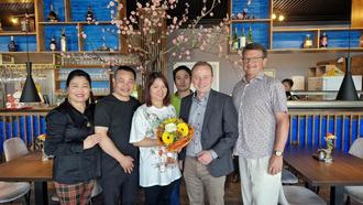Am 20. Juni öffnete in der Bahnhofstraße das neue Asia-Restaurant Nguyen seine Türen. Gemeinsam mit ihrem Mann Truong bringt die Inhaberin Ngoc Nguyen frischen Wind in das gastronomische Angebot der Stadt Bobingen. Die neuen Besitzer stammen aus Augsburg, wo sie bereits einen Imbiss auf dem Stadtmarkt betreiben. Mit „Nguyen“ schaffen sich ein zweites Standbein. „Wir stammen aus einer Familie, die mit der kulinarischen Tradition tief verwurzelt ist. Mein Mann arbeitet seit vielen Jahren als Koch und bringt seine Leidenschaft und Erfahrung in die Küche des neuen Restaurants ein“, so Ngoc Nguyen. Im „Nguyen“ wird großen Wert auf Frische und Qualität gelegt. Alle Speisen werden selbst und frisch zubereitet. Auf der Speisekarte findet sich eine vielfältige Auswahl an köstlichen asiatischen Gerichten und fruchtigen Cocktails. Der Schwerpunkt des Angebots liegt auf traditionellen vietnamesischen Gerichten, die mit authentischen Zutaten und viel Liebe zum Detail zubereitet werden. Ein besonderes Highlight ist der wöchentlich wechselnde Mittagstisch, der den Gästen immer wieder neue, frische Gerichte bietet. Auch die stimmige und gemütliche Inneneinrichtung des Restaurants trägt zur besonderen Atmosphäre bei. Warme Farben, dezente asiatische Dekorationselemente und bequeme Sitzmöglichkeiten schaffe ein einladendes Ambiente. „Die Eröffnung des „Nguyen“ ist ein großer Gewinn für unsere Stadt und verspricht, ein beliebter Treffpunkt für Genießer der asiatischen Küche zu werden“, so Bürgermeister Klaus Förster, der gemeinsam mit Wirtschaftsförderer Thomas Ludwig (rechts im Bild) die neuen Inhaber (Bildmitte) zur Neueröffnung begrüßte.