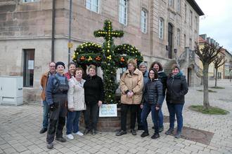 Mit vielen fleißigen Händen wurden die Osterkronen im Garten der Fam. Flory gebunden, am Marktplatz sowie der Spitalkirche aufgestellt und geschmückt.