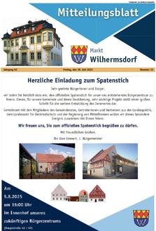 | - | seit einigen Jahren gibt es zudem eine Online-Ausgabe, abrufbar über die Homepage der Gemeinde unter: https://www.markt-wilhermsdorf.de/service-politik/service/mitteilungsblatt |