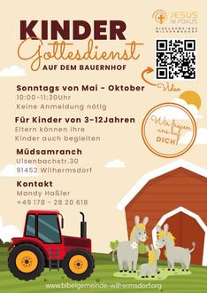 | 10:00 Uhr | Kindergottesdienst auf der „Müdsam Ranch.“ |
