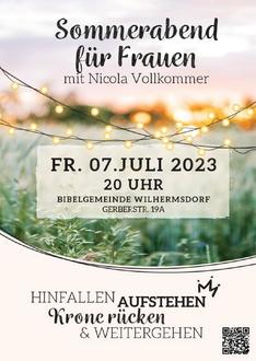 Ein unvergesslicher Abend erwartet alle Frauen am Freitag, den 07.07.2023 um 20:00 Uhr! Nicola Vollkommer ist zu Gast in der Bibelgemeinde!