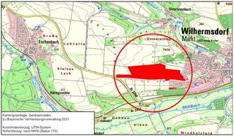 Zum Zeitpunkt dieser Bekanntmachung umfasst der Änderungsbereich des Flächennutzungsplans die Grundstücke mit den Flurnummern 510, 1250, 1252/2, 1252, 1253, 1254, 1255, 1256, 1257, 1258, 1259, 1260, 1261, 1263, 1264, 1265, 1266, 1268/1 und 1268/2 sowie Teilflächen der Grundstücke mit den Flurnummern 274/3, 277, 277/3, 277/4, 277/5, 277/7, 1245, 1267,1268 und 1355/2 jeweils der Gemarkung Wilhermsdorf.