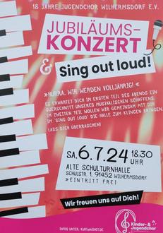 "Wir werden volljährig! - 18 Jahre Jugendchor" und wir feiern am Samstag, den 06.07.2024, in der Alten Schulturnhalle Wilhermsdorf um 18:30 bis 20:30 Uhr.