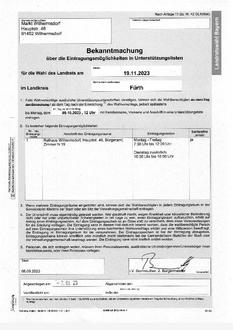 Bekanntmachung Eintragungsmöglichkeiten Unterstützungslisten